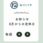 デフォルト 🌻お盆休みのお知らせ🌻 更新日: 2025.07.312025.08.01コメントをどうぞ (🌻お盆休みのお知らせ🌻) 8/13(水)〜8/15(金)はねづくりやはお盆休みとなります ▶︎お席のご予約・お問い合わせ電話番号:03-5809-0326 https://www.instagram.com/nezukuriya/ InstagramのDMからも承ります